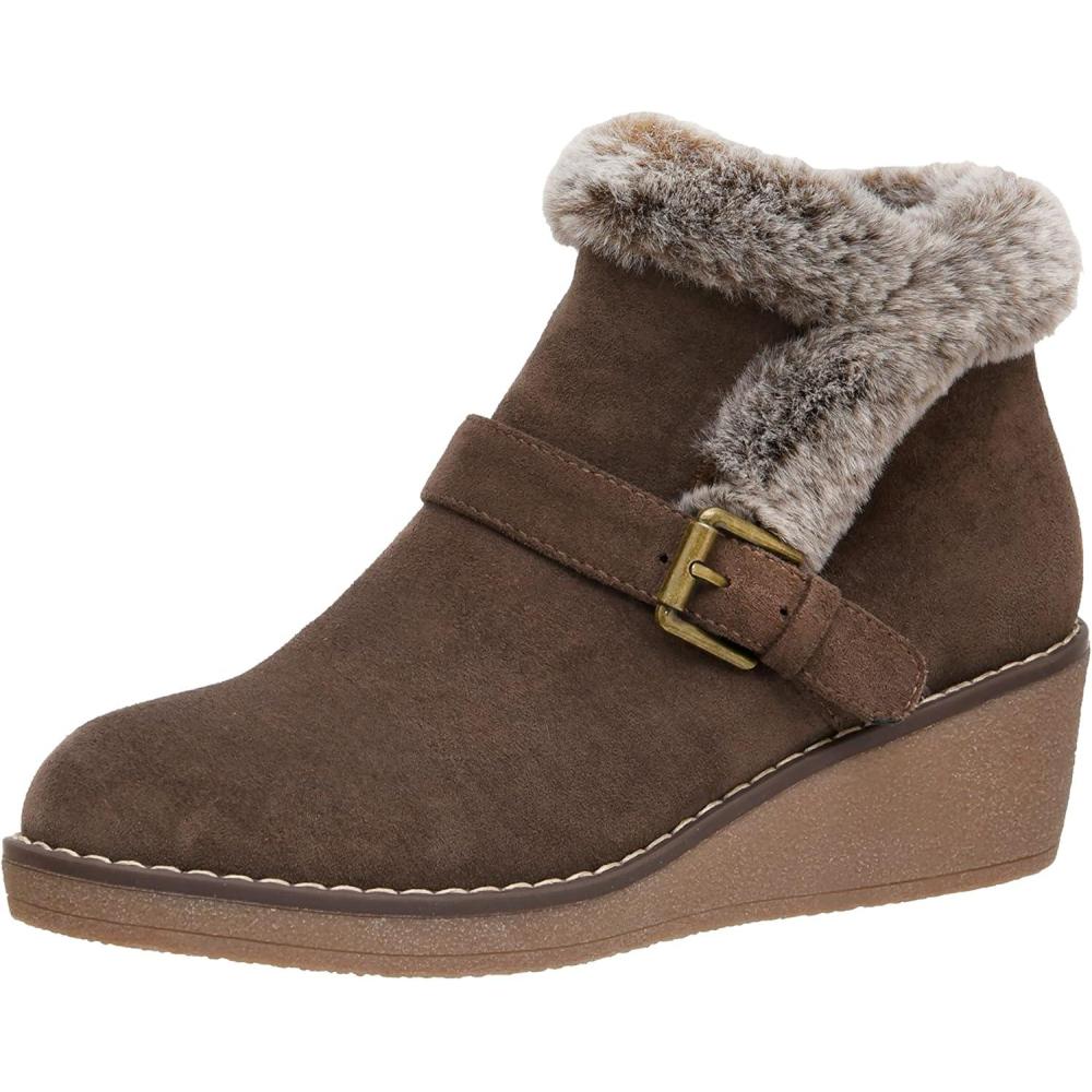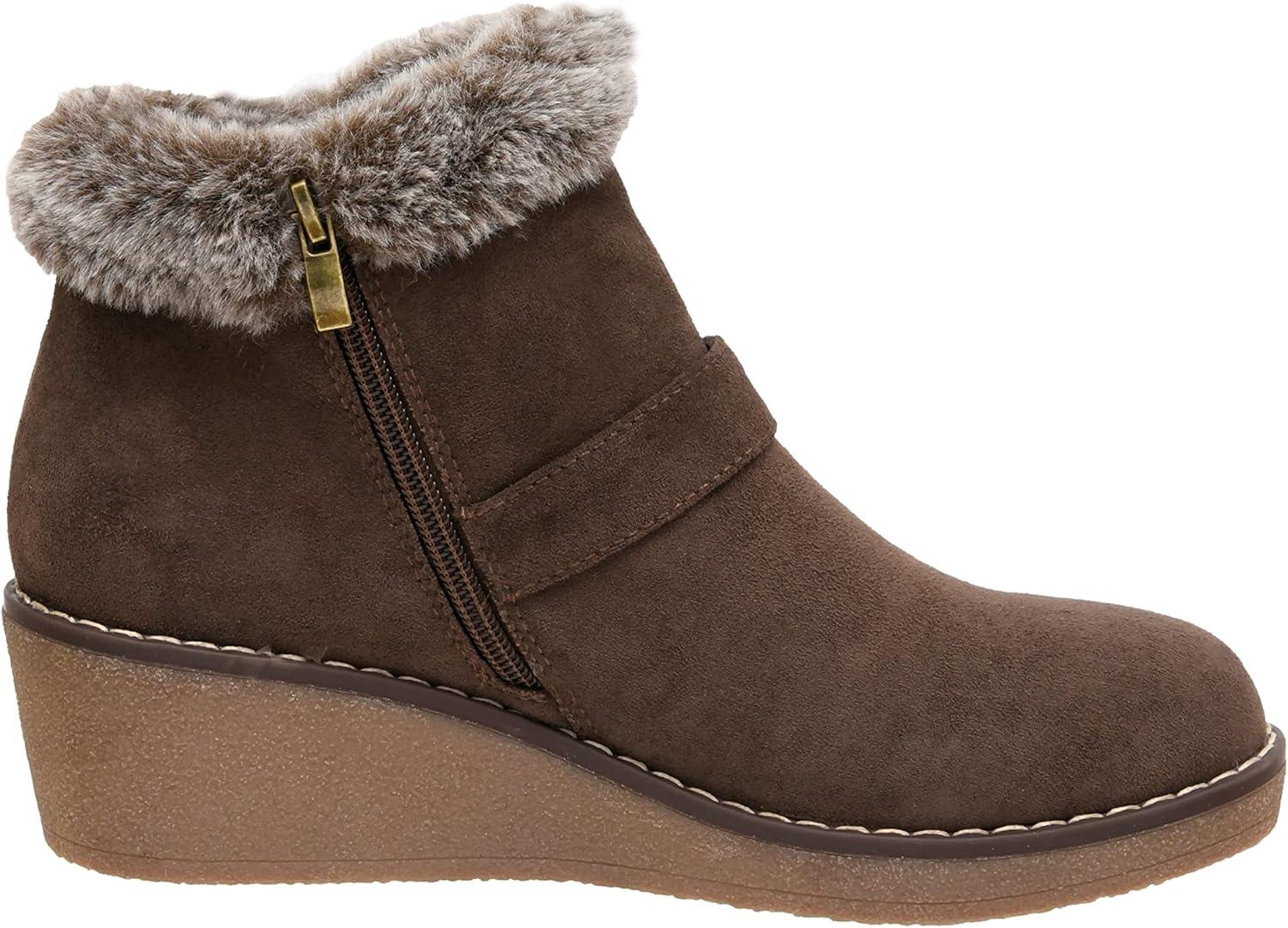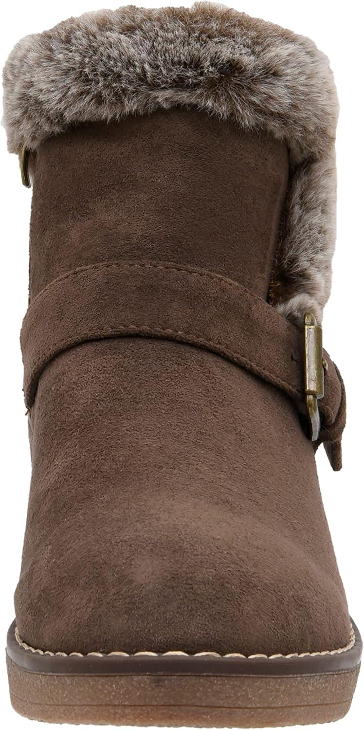 imageCUSHIONAIRE Womens Rhodes Faux Suede Winter Booties  Fur Boots for Women with Memory Foam Comfy Boots with Faux Fur Side Zipper 2Inch Wedge Heel Wide Widths AvailableChestnut