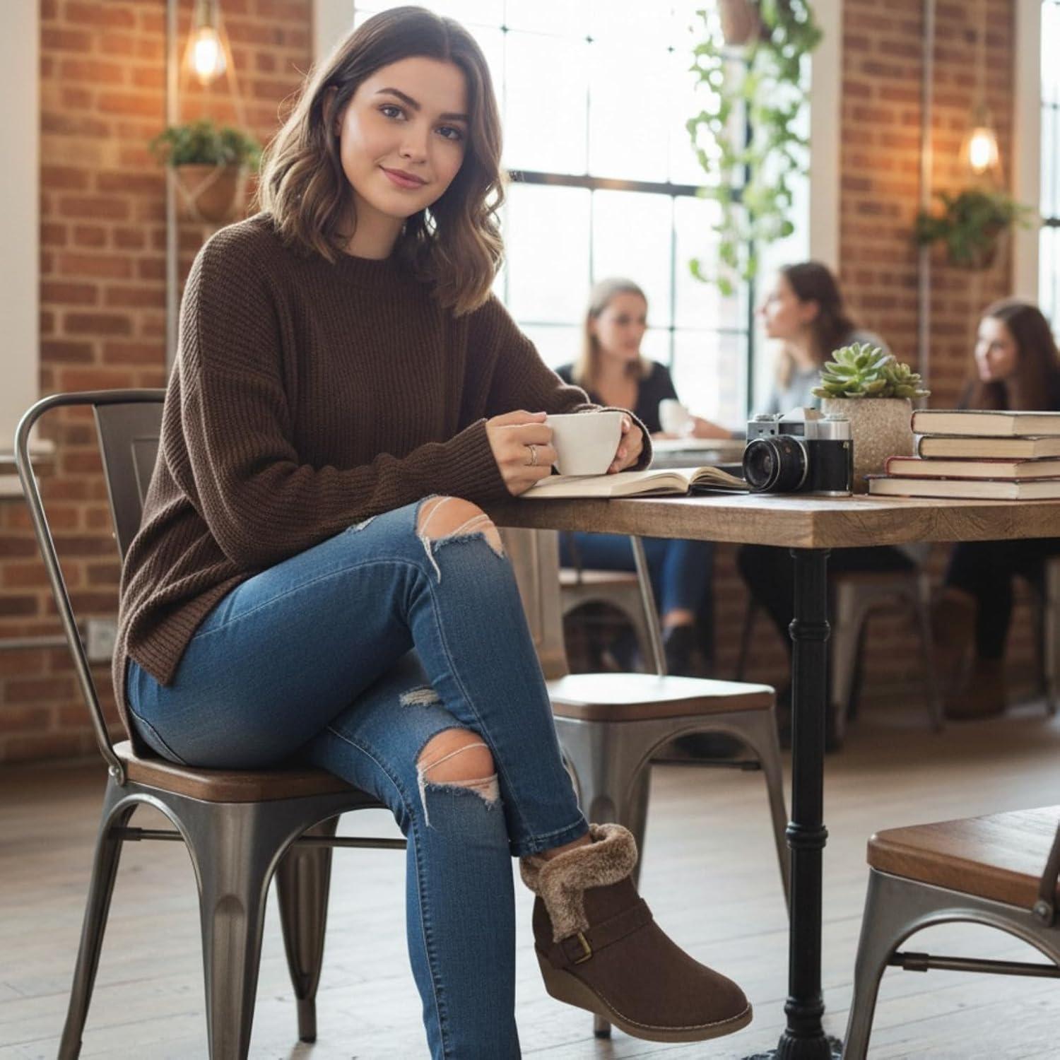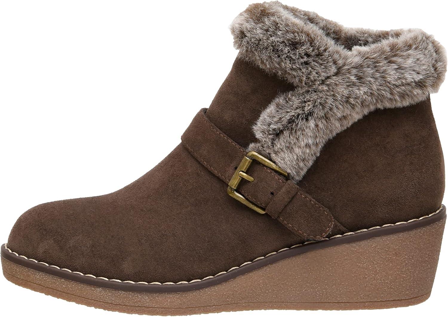CUSHIONAIRE Women’s Rhodes Faux Suede Winter Booties – Fur Boots for Women with Memory Foam, Comfy Boots with Faux Fur, Side Zipper, 2-Inch Wedge Heel, Wide Widths Available(Chestnut)