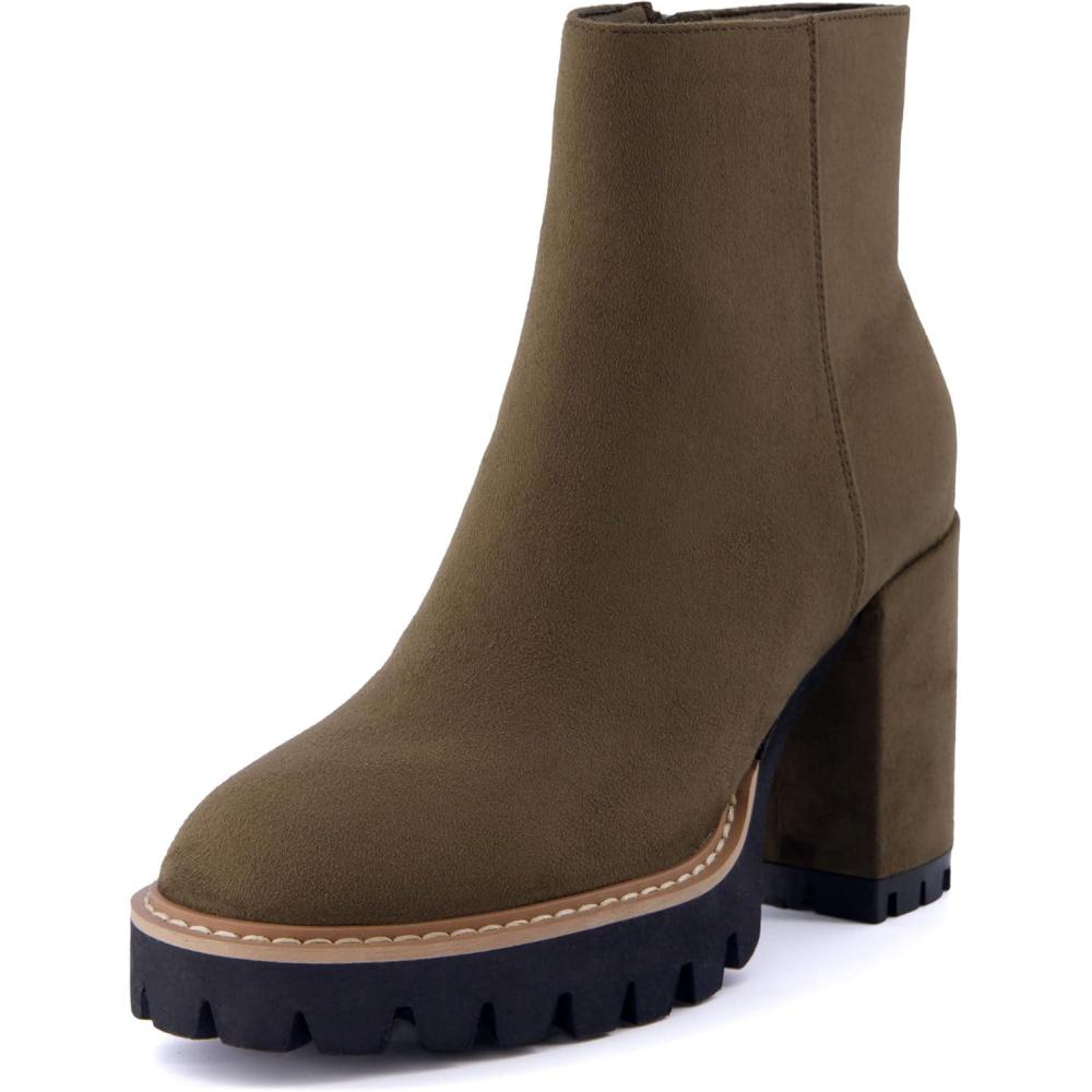 CUSHIONAIRE Women’s Ringo platform heel boot +Memory Foam, Wide Widths Available(Olive)