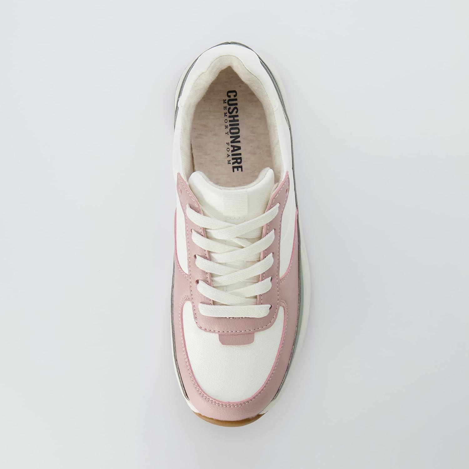 CUSHIONAIRE Women's Score lace up Sneaker +Comfort Foam, Wide Widths Available(White/Pink)
