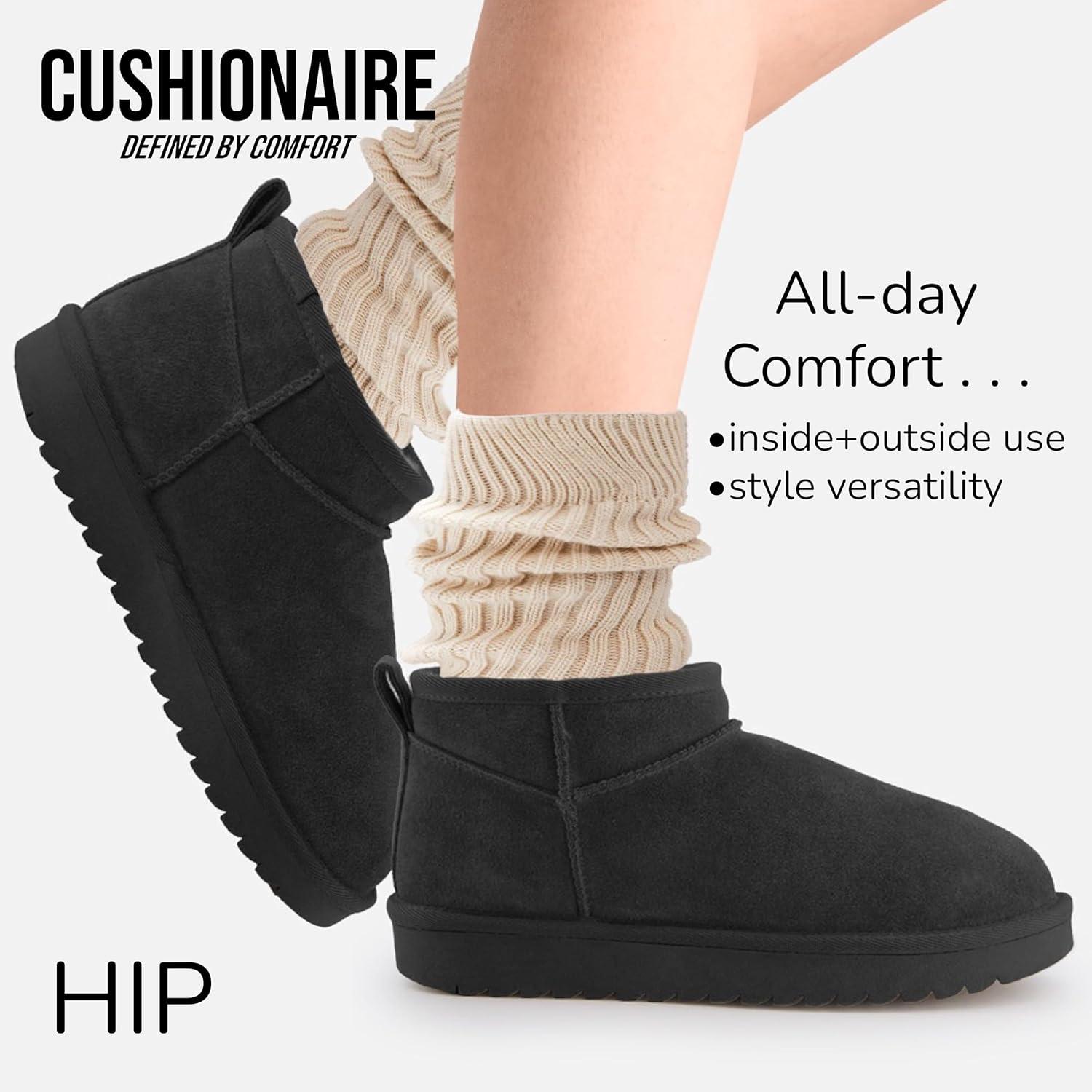 Step into warmth, comfort, and style with the CUSHIONAIRE Women's Hip 2 Genuine Suede Ankle Snow Boots. Crafted from premium, high-quality suede, these boots are designed to keep your feet cozy and protected during cold weather. Customers love the comfortable fit and plush faux fur lining, which provide a soft, luxurious feel from the moment you slip them on. Whether you're braving chilly outdoor conditions in Fall, Winter or lounging indoors, these boots offer the perfect blend of comfort and warmth. Featuring a water-resistant upper, these snow boots help shield your feet from light rain and snow, keeping you dry and comfortable throughout the day. The memory foam insole ensures all-day cushioning, adapting to your foot for personalized support, while the non-slip rubber outsole provides reliable traction on slippery surfaces. With their easy slip-on design and 3.25-inch ankle height, these boots are not only practical but also versatile enough for various occasions—whether you're running errands or meeting friends for a casual outing.