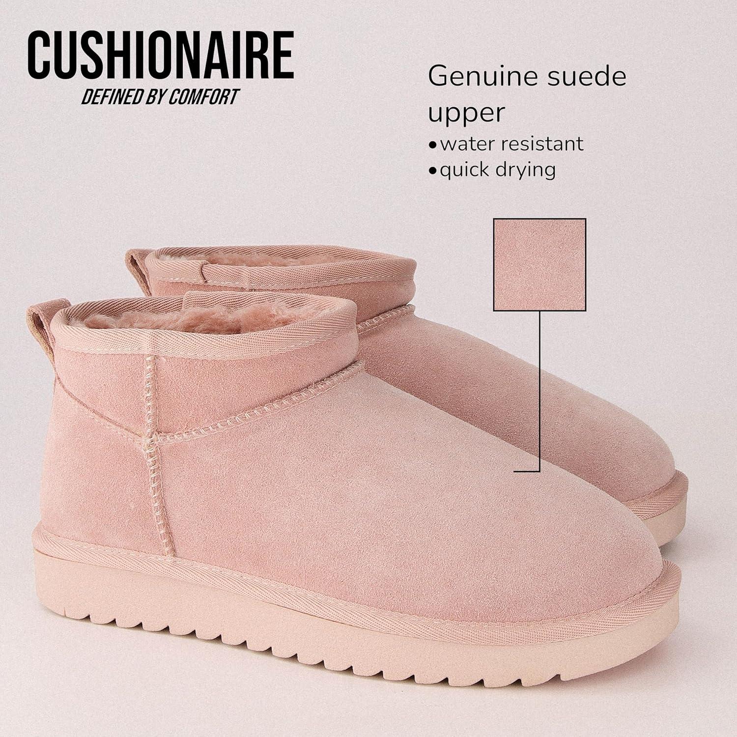 CUSHIONAIRE womens Shearling(Pink Genuine Suede)