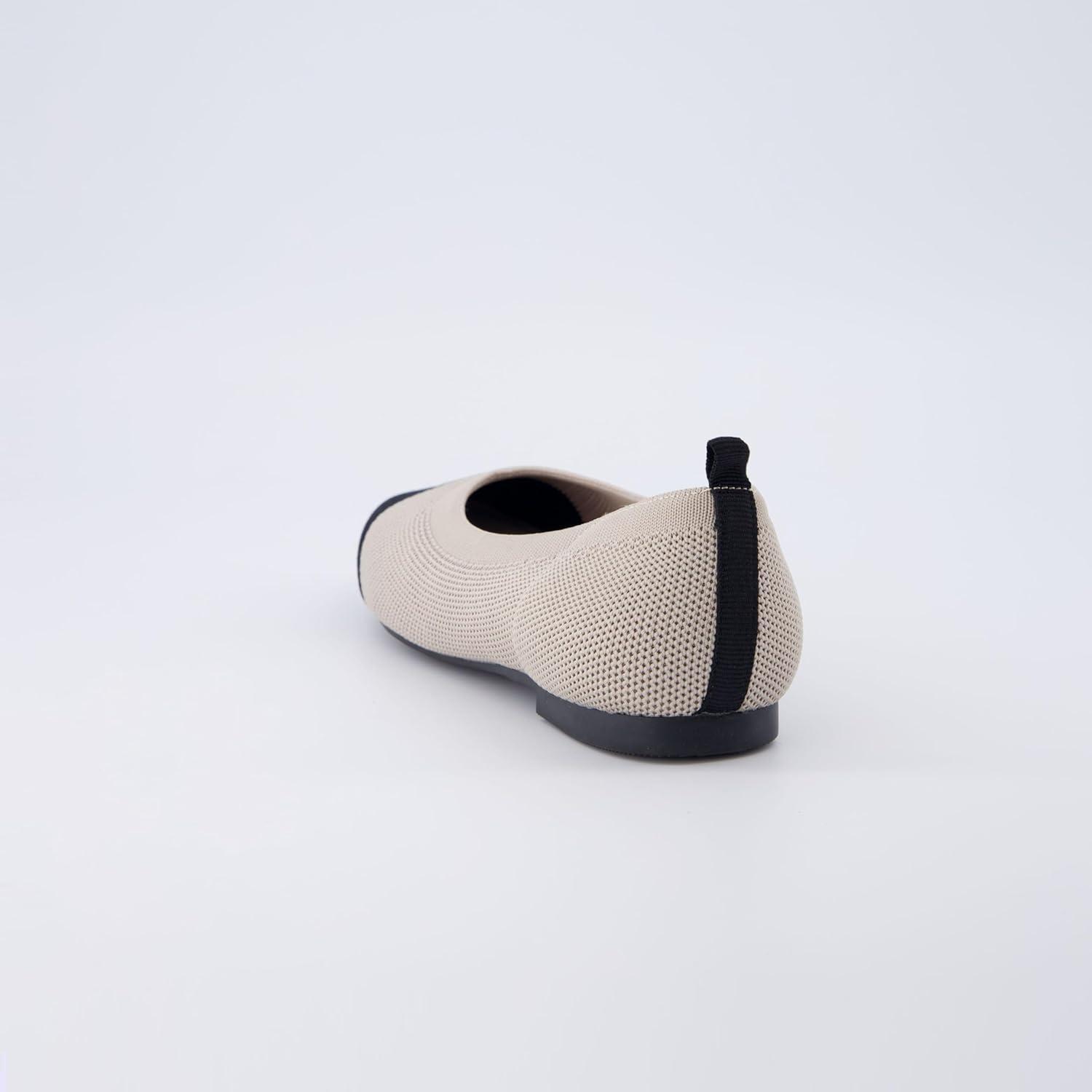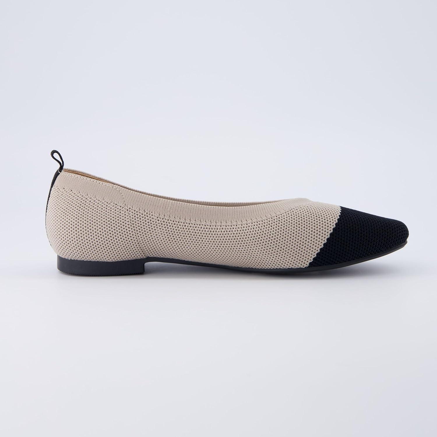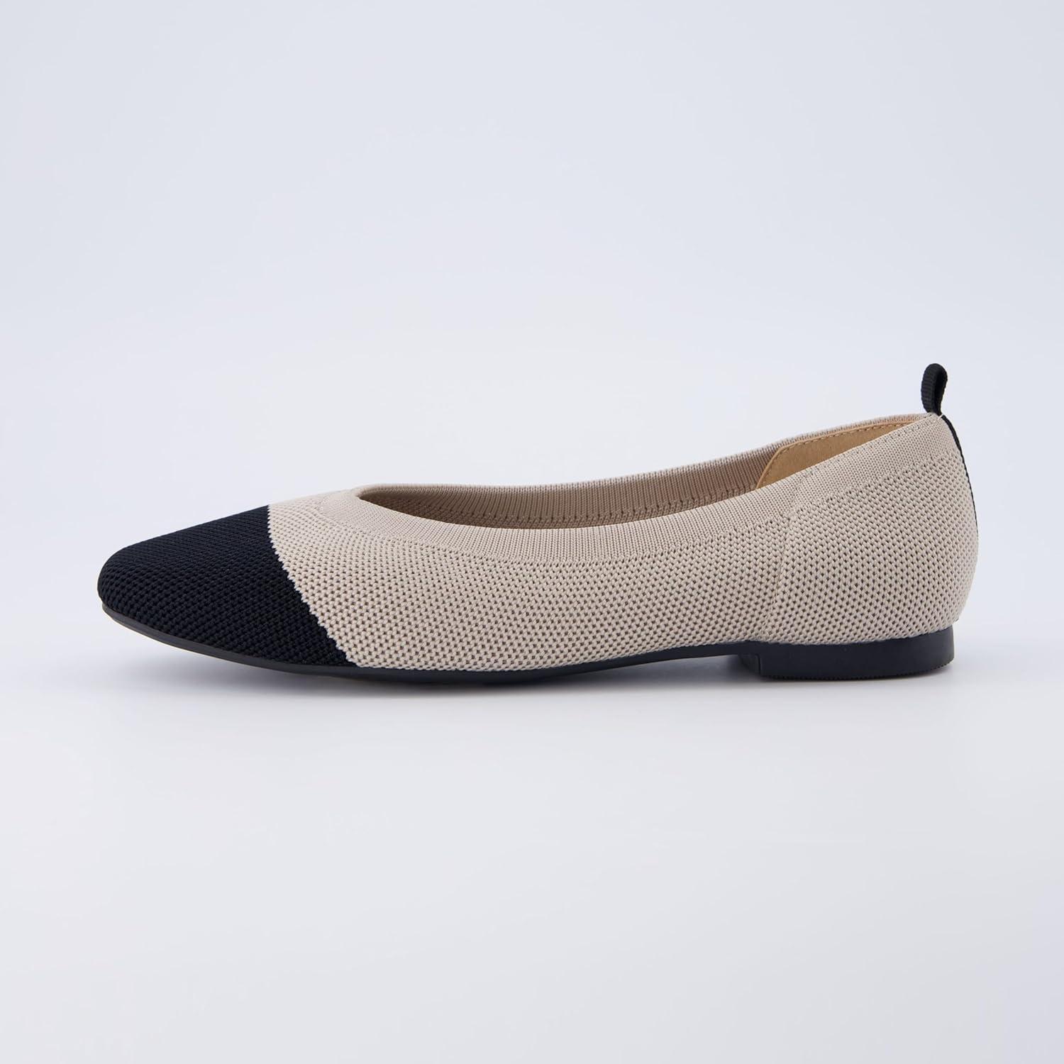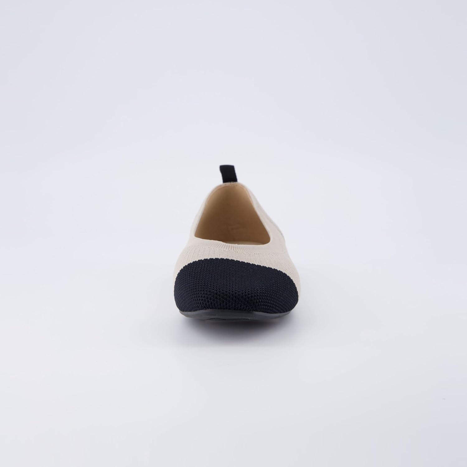 CUSHIONAIRE Women’s Splendor Knit Flat with +Memory Foam, Wide Widths Available(Beige/Black Knit)