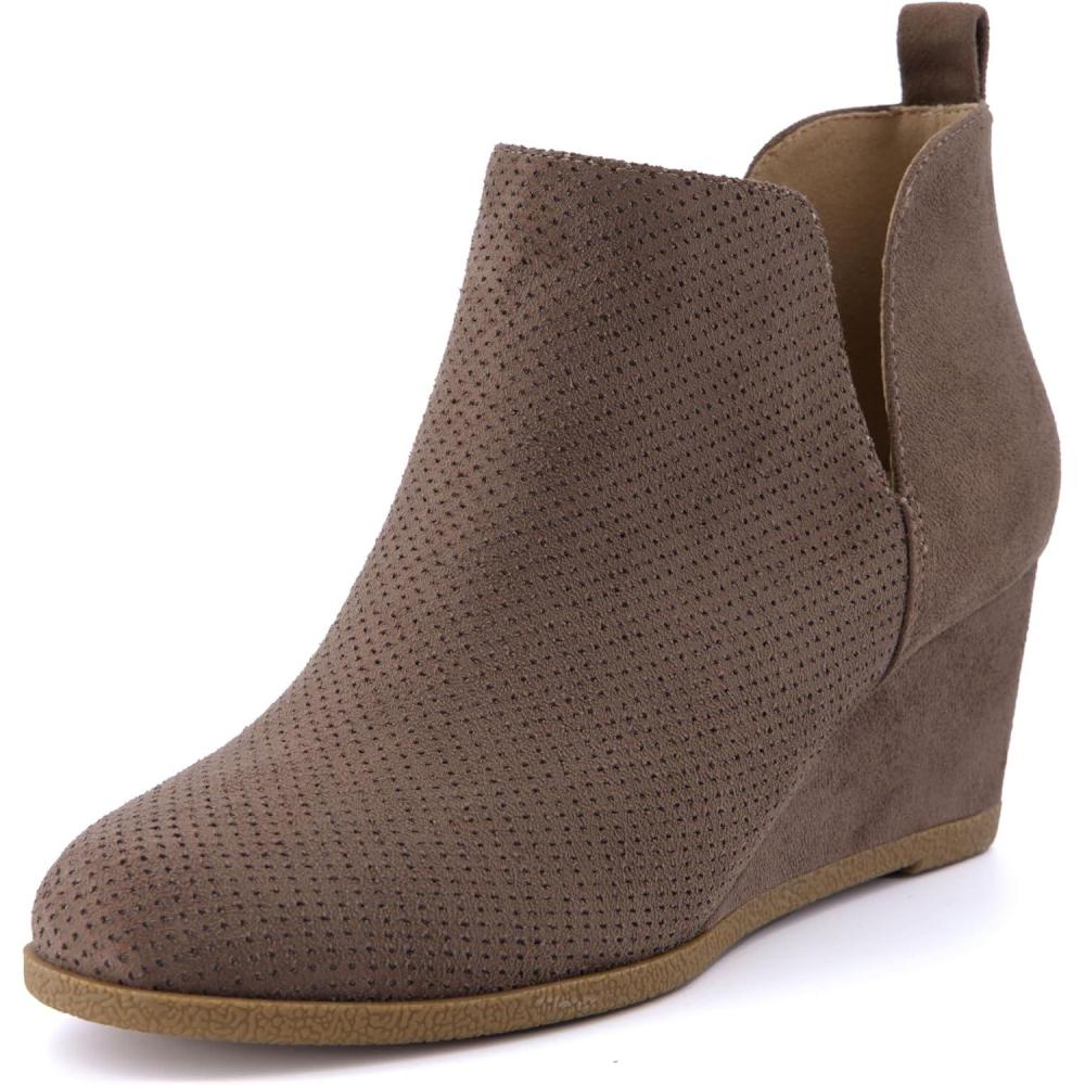 CUSHIONAIRE Women’s Tito Wedge Bootie – Soft Vegan Suede, Memory Foam, Wide Width Available(Taupe)