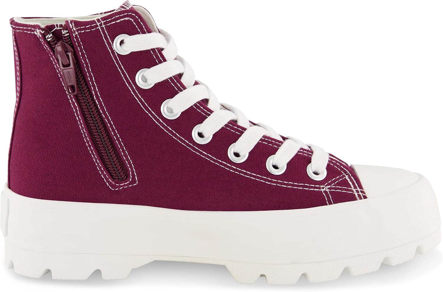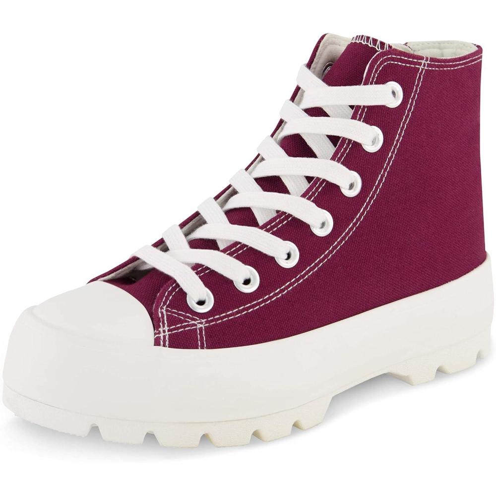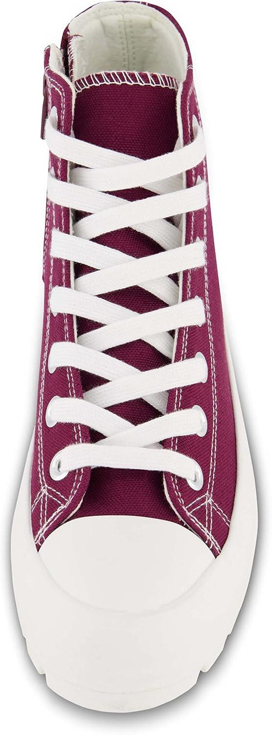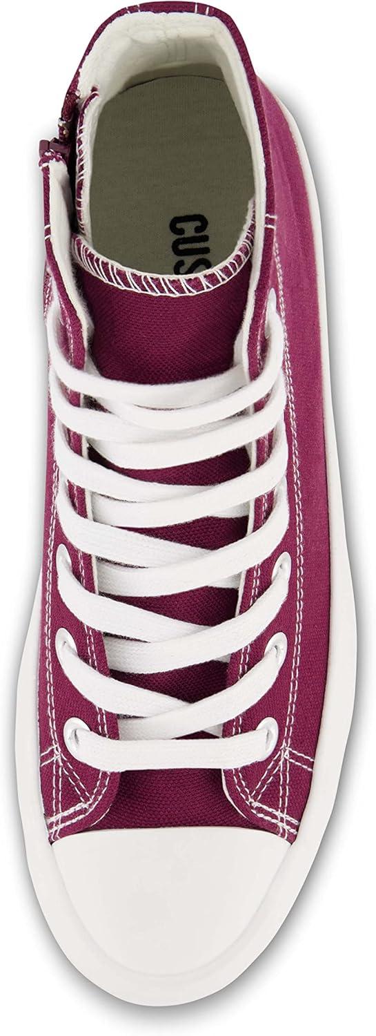 CUSHIONAIRE Women’s Vespa high top Canvas Sneaker +Memory Foam and Side Zipper(Burgundy Zip)