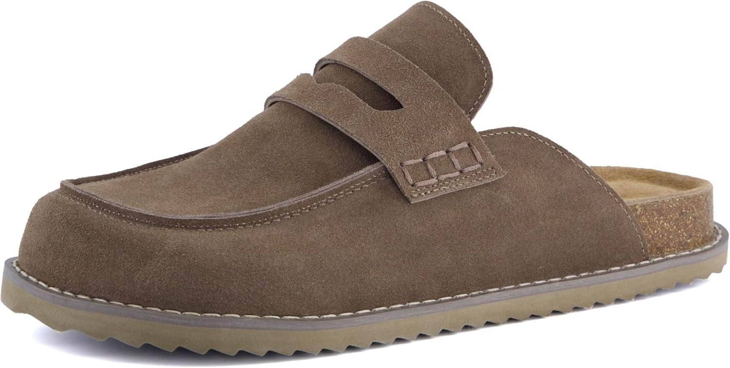 CUSHIONAIRE Zola Women’s Penny Clog Mule – Suede Slip-On with Memory Foam, Cork Footbed & Flexible Outsole(Chestnut)