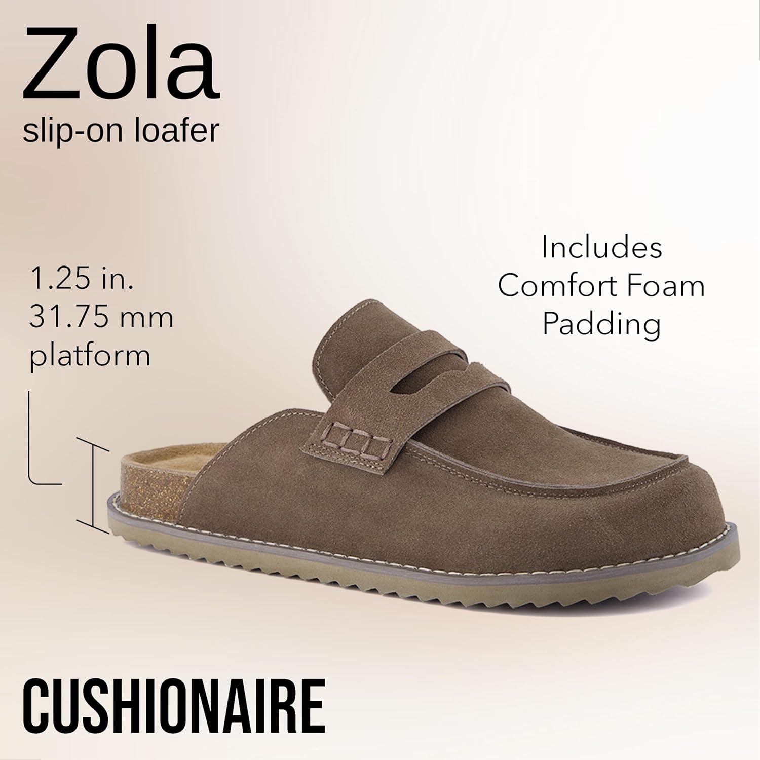 imageCUSHIONAIRE Zola Womens Penny Clog Mule  Suede SlipOn with Memory Foam Cork Footbed ampamp Flexible OutsoleTaupe