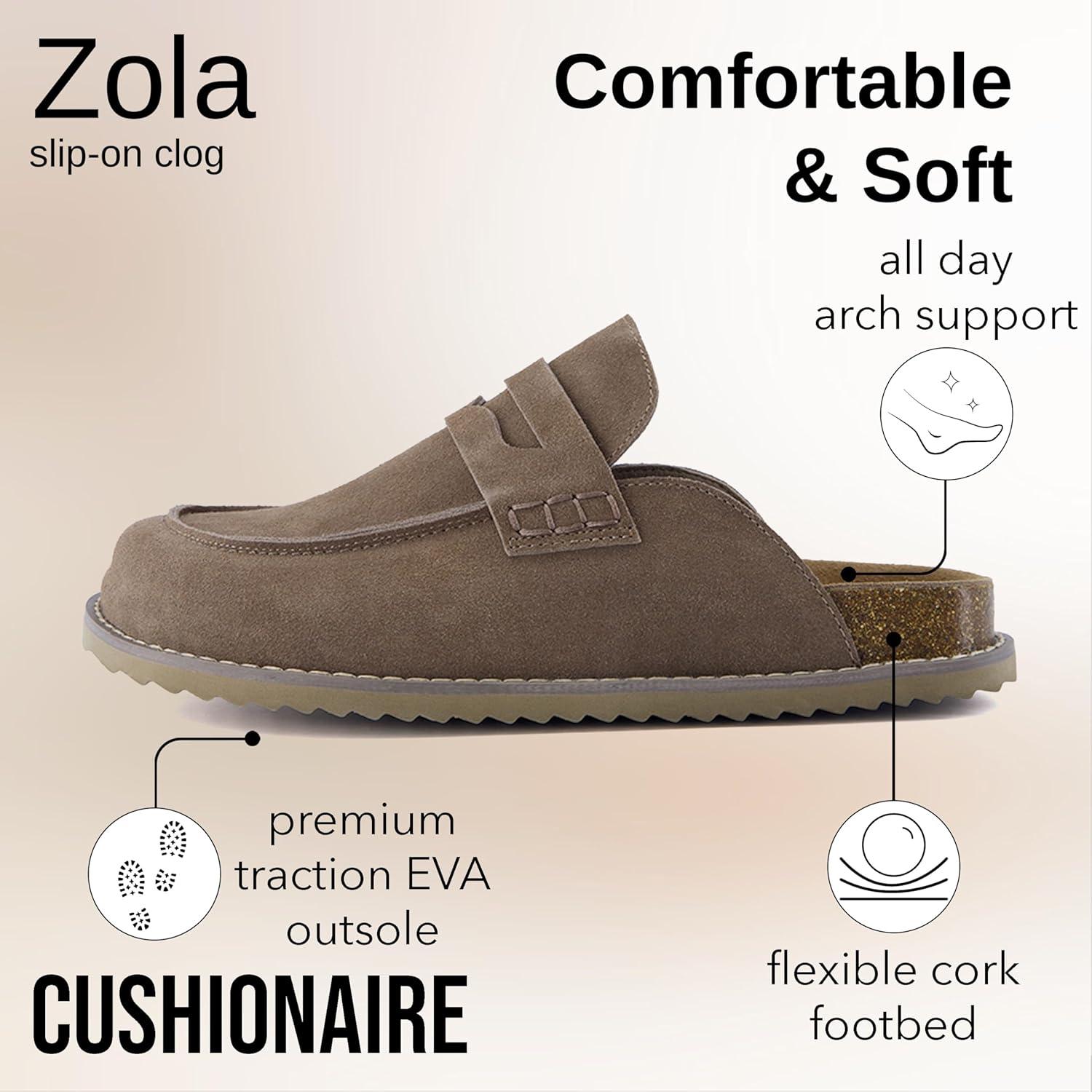 CUSHIONAIRE Zola Women’s Penny Clog Mule – Suede Slip-On with Memory Foam, Cork Footbed & Flexible Outsole(Taupe)
