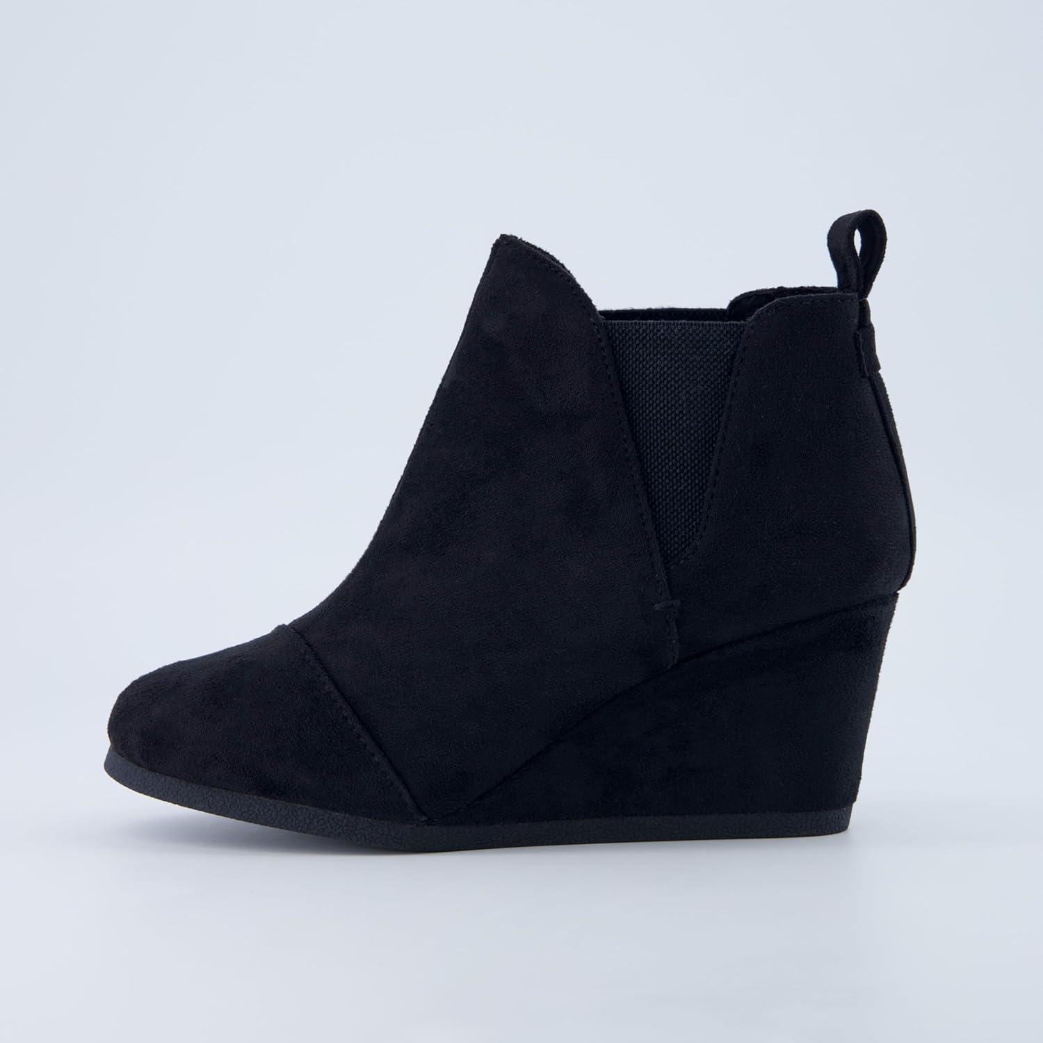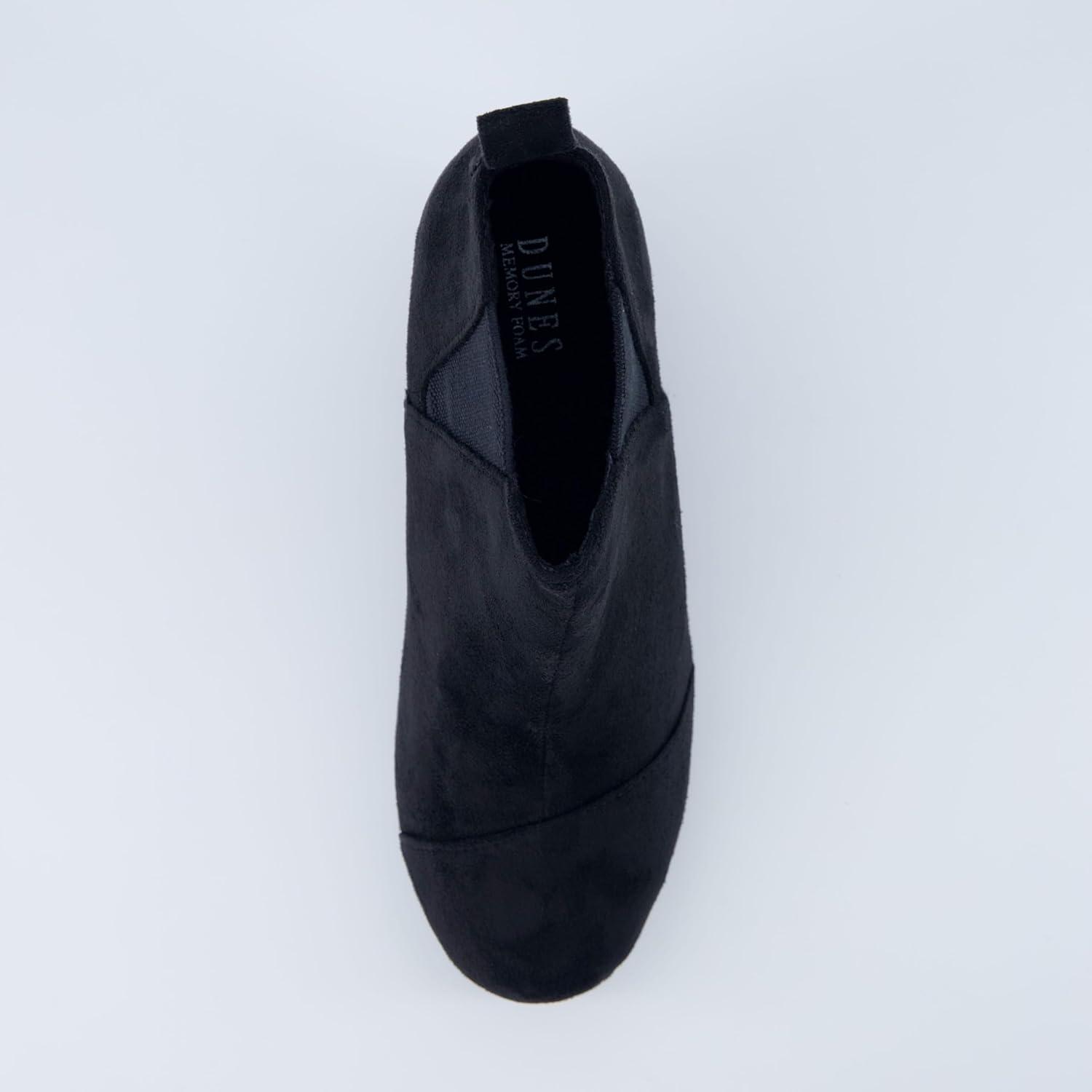 Dunes Women's Zoey Wedge Bootie, Soft Vegan Suede, Easy Slip-On Design, Memory Foam, Wide Widths Available(Black)