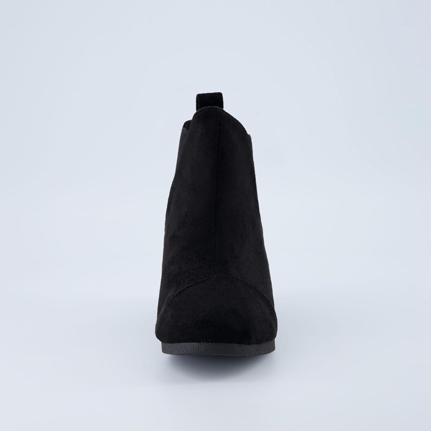 Dunes Women’s Zoey Wedge Bootie, Soft Vegan Suede, Easy Slip-On Design, Memory Foam, Wide Widths Available(Black)